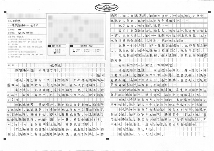 看到此题时,由“她”字出发,想到了女性。长久以来,我们耳边的喧嚣从未停止。来自社会,来自舆论,来自亲人……一道道重重的枷锁砸下,荡起尘灰。是的,女性,被困住了。但请别忘记,女性是多元的、生动的、丰富的。她们可以搏事业,像武则天一样一展宏图;可以学理科,像陈薇、居里夫人一样为科学做贡献;可以不娇弱,像花木兰一样铁血刚强……相隔时间与地域,“她”很远。可正是这份远,让闪闪发光的女性品格愈发耀眼,指引着我义无反顾的奔赴!