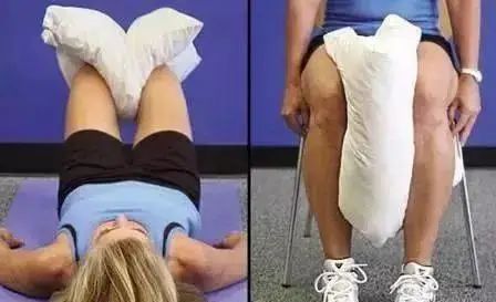 仰卧,双膝弯曲。放置一个枕头在两膝之间。用力夹紧双膝,把枕头挤扁。保持 5 秒钟,放松,重复做 10 次。你也可以坐着做这个练习。