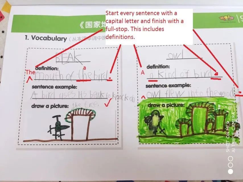 比如有针对课文的阅读理解问答题,有填空完成句子,也有用思维导图做比较练习,这个都是从小就培养孩子书写意识,从完整句子的概念开始练起,也能够让家长知道孩子到底有没有理解课程内容。