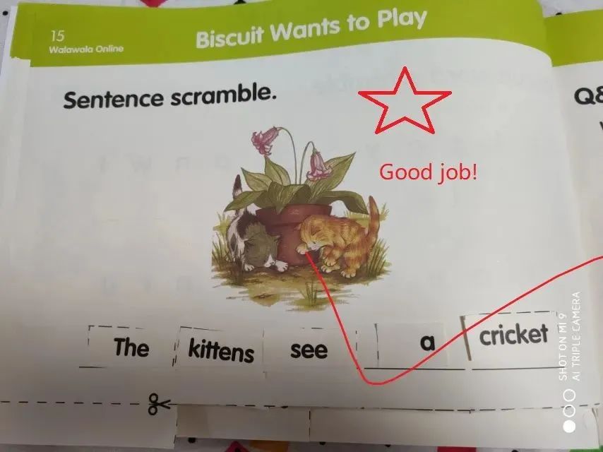 整个《饼干狗》小Justin学习了差不多3个月的时间。视频课程听不懂,又不愿意重看,朗读录音作业做不出来,唯一书面作业中的贴贴画画还能做一部分。无奈之下,妈妈只能密集做亲子阅读,精读《饼干狗》和泛读分级绘本同步进行,交叉学习缓解孩子对课程学习的抗拒。