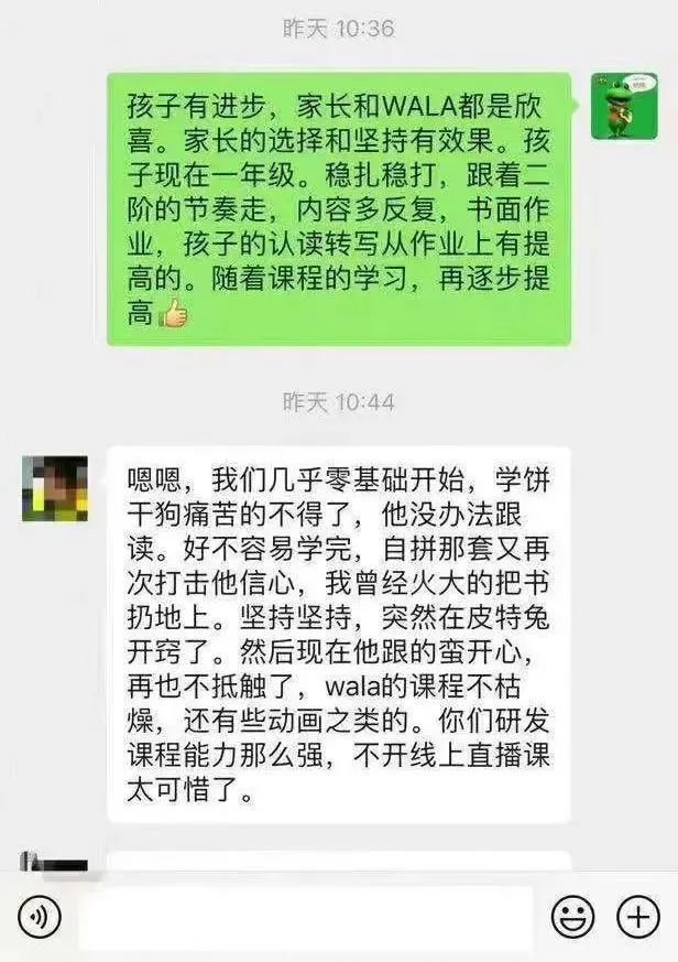 试听其实效果挺差的,但是我就是觉得你们的课程和别人的不一样,所以相隔5个月之后,我还是咬牙给孩子买了整个一阶的课程。