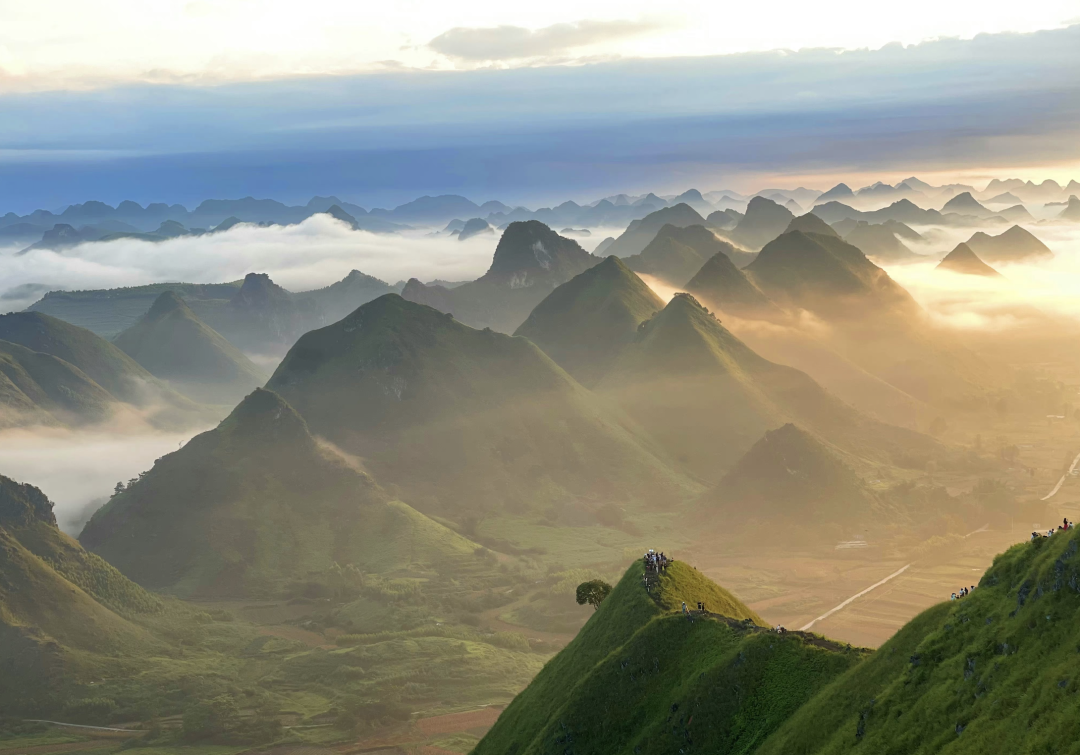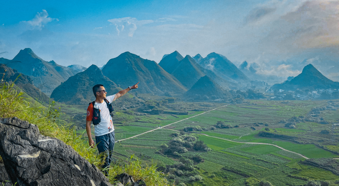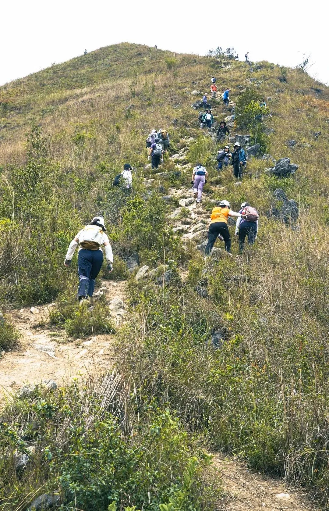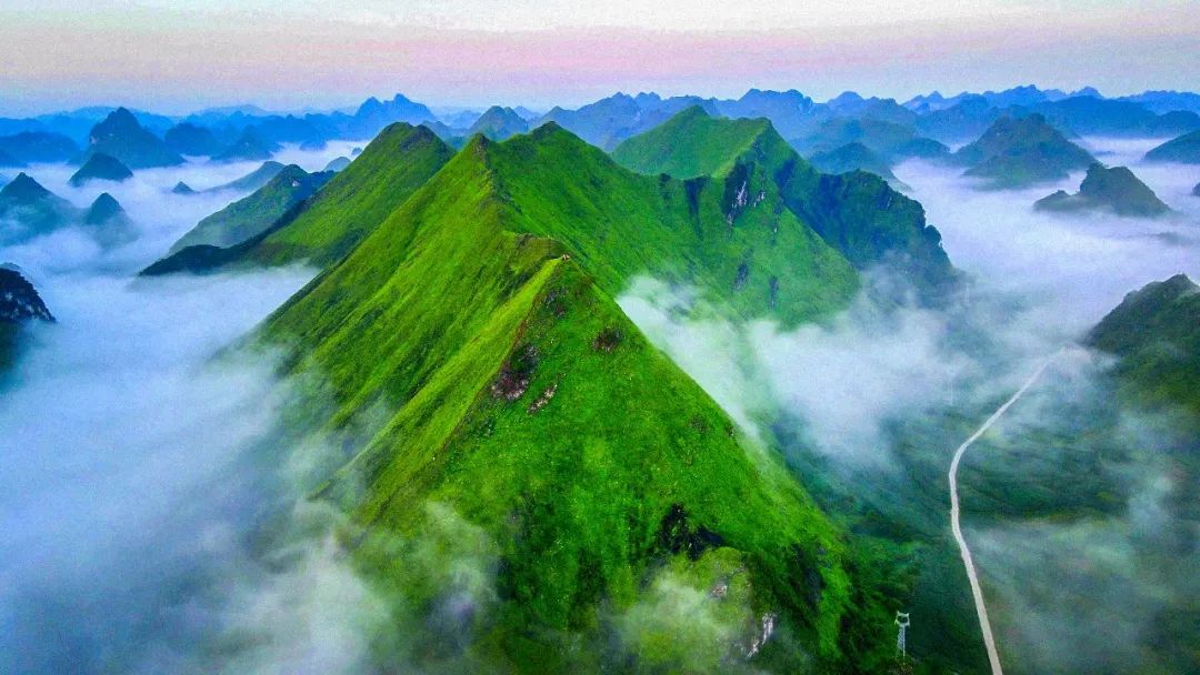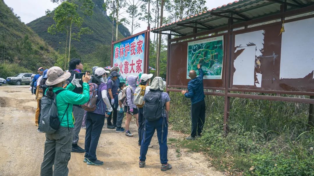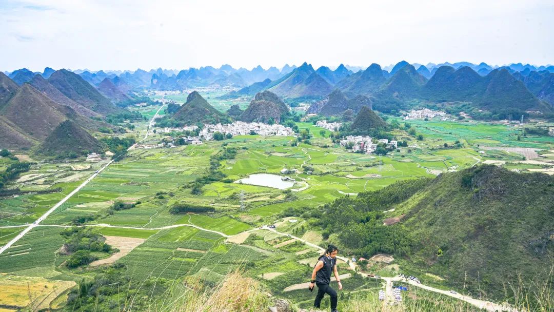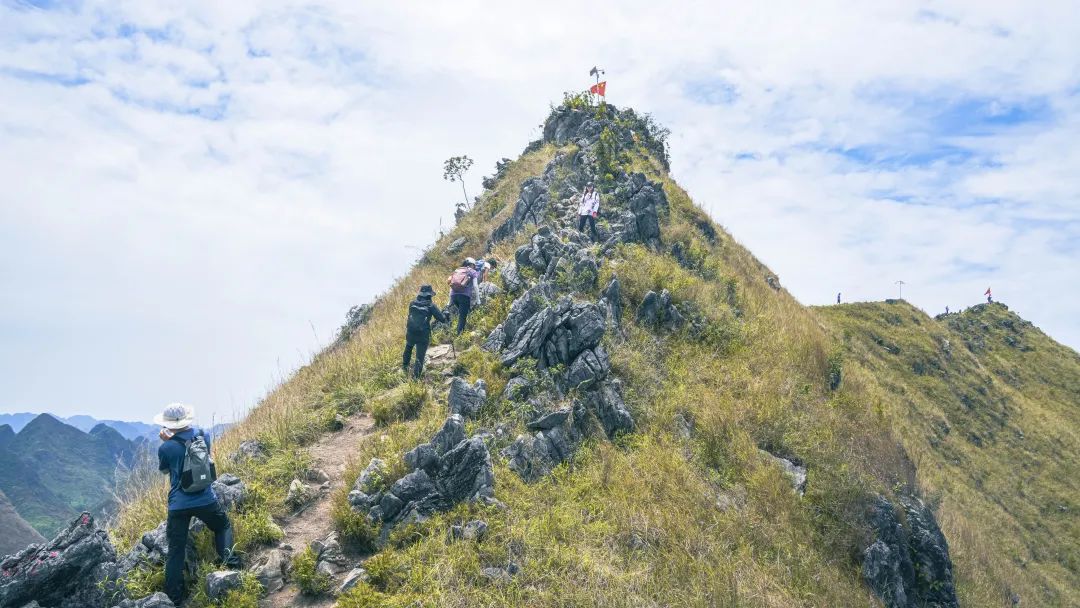 剑龙山位于天等县内,属于十万大山地域,山势如剑龙的背脊而得名,是一座原始未开发的喀斯特峰丛地貌野山,我们到达的时候人还不多,直接开始200米左右的爬升,碎石山路,部分路段新手可能开启四驱模式更省力,爬到山中间开始有山风,往下便能看见远处的广西标志性的田园风光。