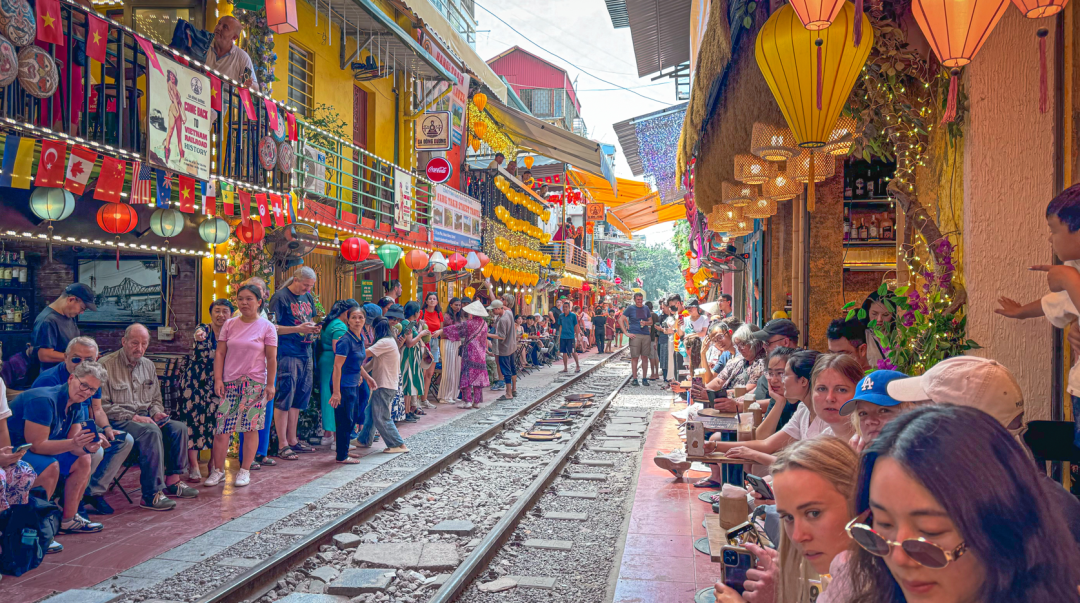 火车开过,大家可以走到铁轨中间拍照,坐在咖啡店点杯咖啡果汁聊天慢饮,也是有趣。