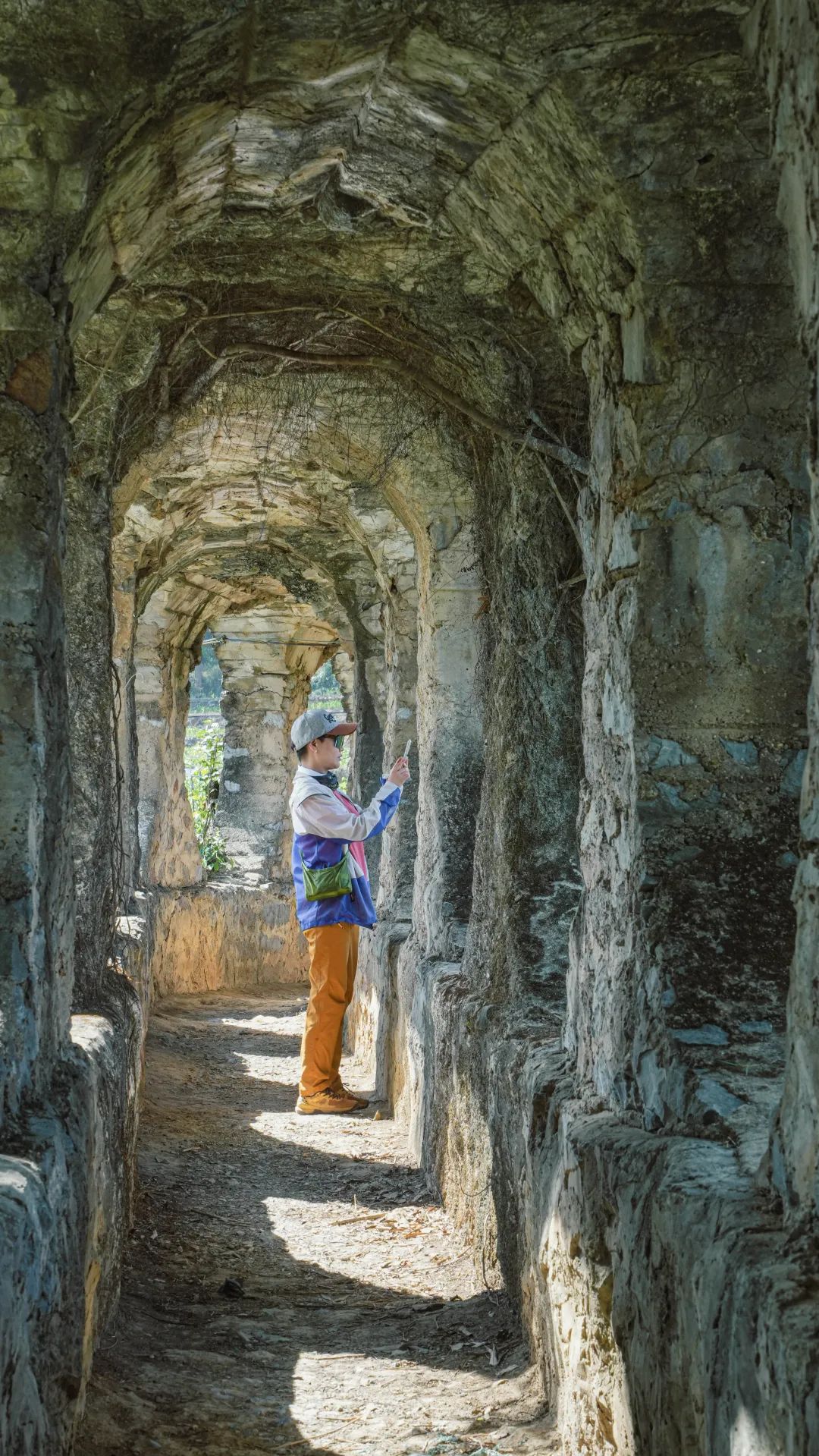 从天等县到明仕田园的路上,经过一座渡槽,开车经过很容易忽略,这是一个长 200 多米的渡槽,有 90 个左右对称的圆孔支撑,采用石头与石灰垒砌而成,为双层结构,上层是过水槽,下层是走人桥。