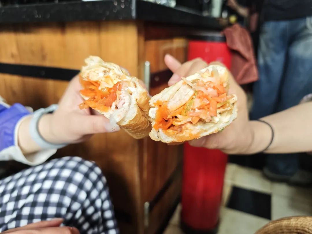 路过网红法棍店,非常多人排队,秉持着来都来了,我们一行人也加入排队大军,说是法棍更像法式与越南风味的三明治(或汉堡🍔),酥脆的法棍中夹着各种越南特色扎肉,没有踩雷。
