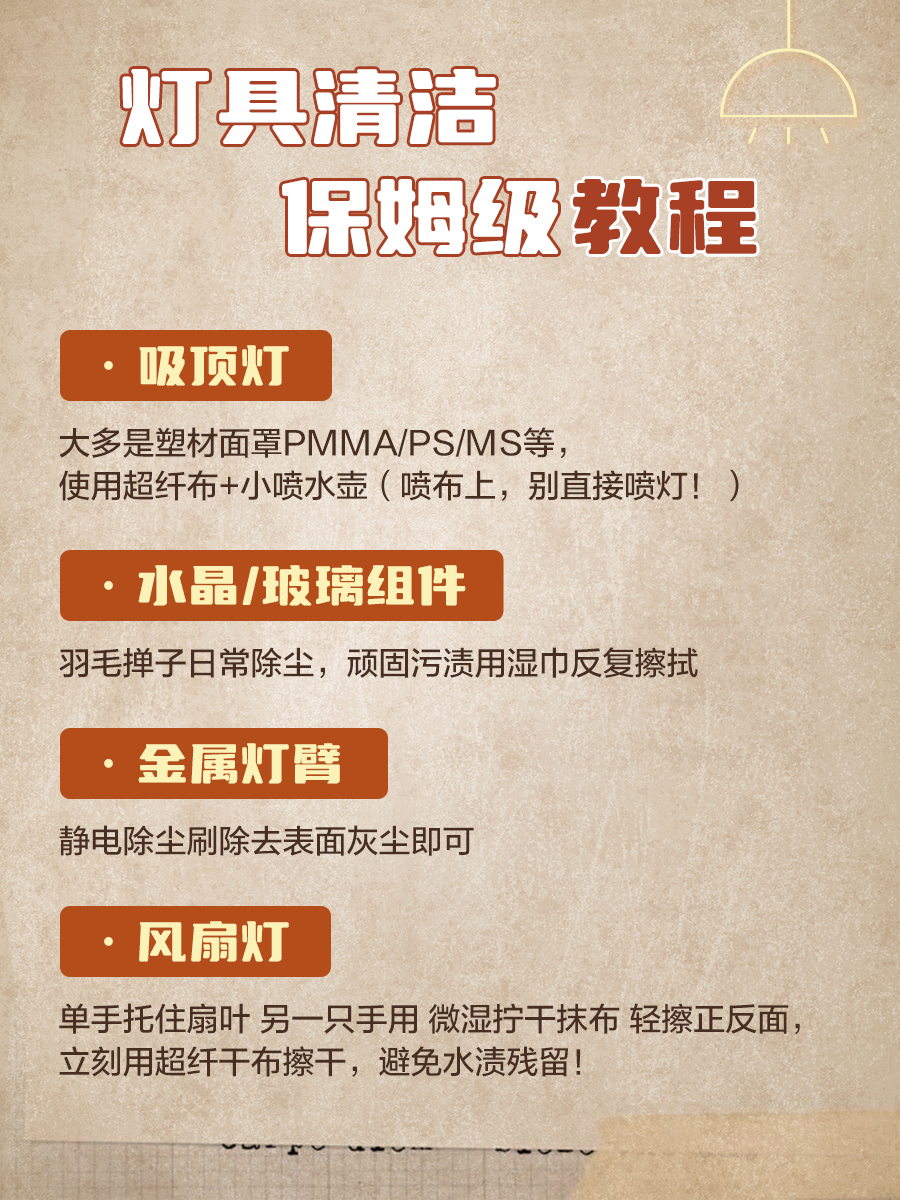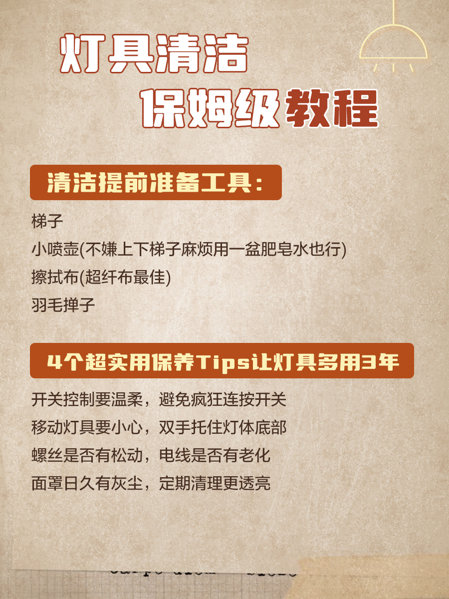 春节大扫除进行时!灯具作为家里的“颜值担当”,清洁到位才能让新年家宴更有氛围感~今天整理了超全灯具清洁攻略,附避坑指南和保养技巧,快码住!👇