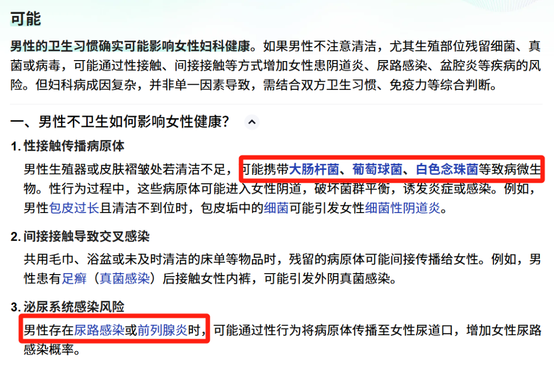 而且这不仅只是男士自己的问题,如果是有对象的,还会感染女士,造成妇科bing,