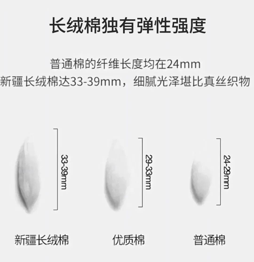长绒棉的生长周期比普通棉长10~15天,纤维长达33-39毫米(最长可达64毫米),比普通棉花长了不止一倍!!