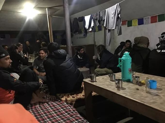 所以那一晚我住在客栈中间的帐篷里,第二天我在朋友圈里写到:一夜根本睡不了觉,好多尼泊尔年轻人唱歌跳舞,喝醉了呕吐的,感冒了擤鼻涕的,在帐篷旁来来去去的,半夜睡不着起来大声聊天的,还有自得其乐半夜唱歌的好不热闹,有一种住在集市的感觉。不过,倒是一种别样的体验,试想想摸黑住在雪山下的帐篷里,这样的经历人生能有几回呢?
