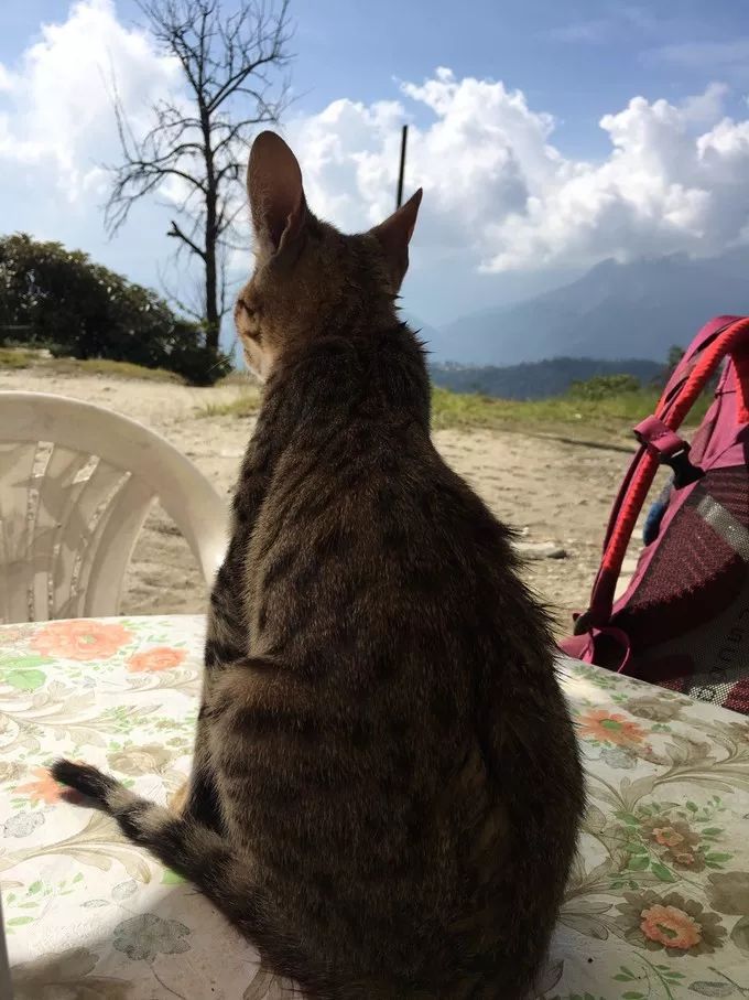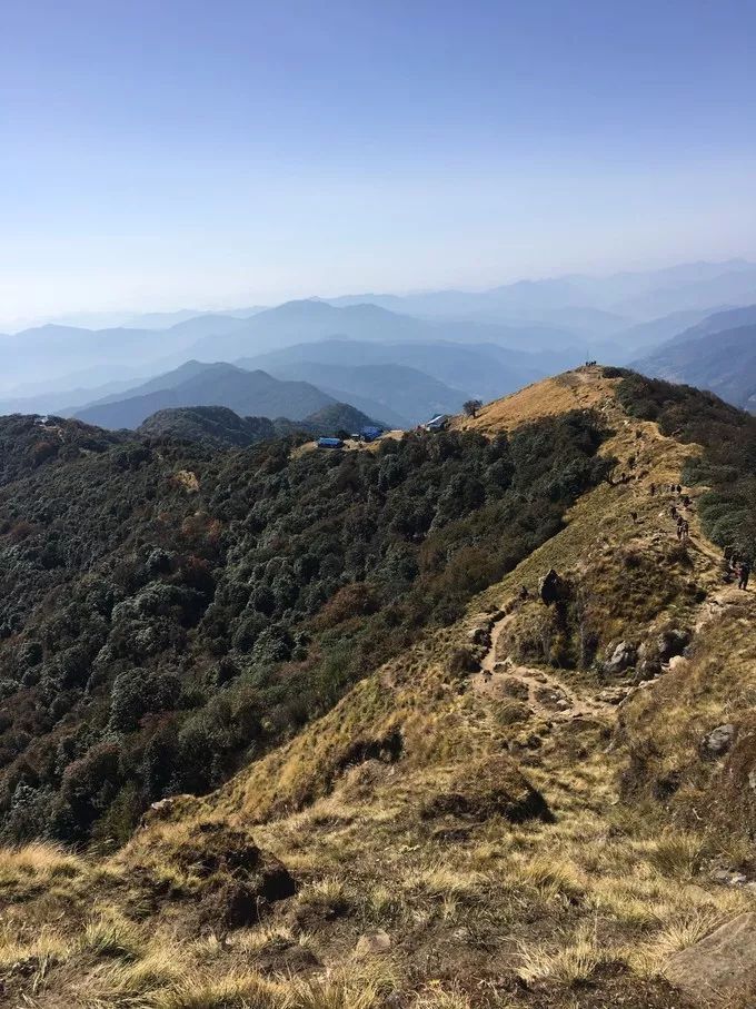 大多徒步者都停留在这里看完日出便返程了,因为说实话,这里也是看日出最好的地方。但我是属于那种有目标就要去完成的人,来之前看见写着 Mardihimal 与高度的那块标志,就一心想到那里。好吧,喝完茶接着往上.....