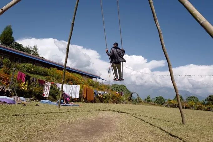 没事的时候就坐在这个秋千上晃呀晃,尤其傍晚时分,远处的雪山慢慢变成金色,我就那样边晃边看着它们,不说话,也不想说话。在城市里,我们总是说得太多,总是希望表达、诉说,希望别人同意自己、理解自己,然后再证明自己很好,自己是对的,然而有时想想,雪山它从不说话,就那样屹立在哪里,它就是它......