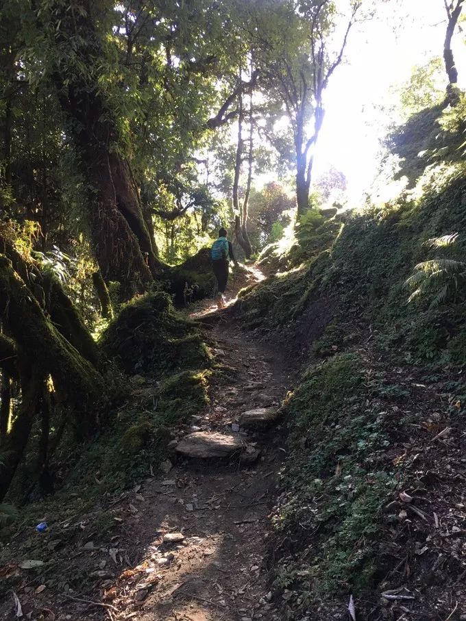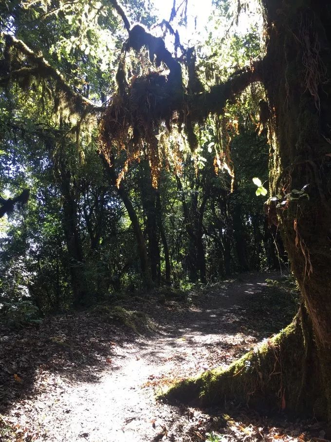 吃完早餐开始出发,这一天,大部分时间都在树林里穿梭,一路向上......