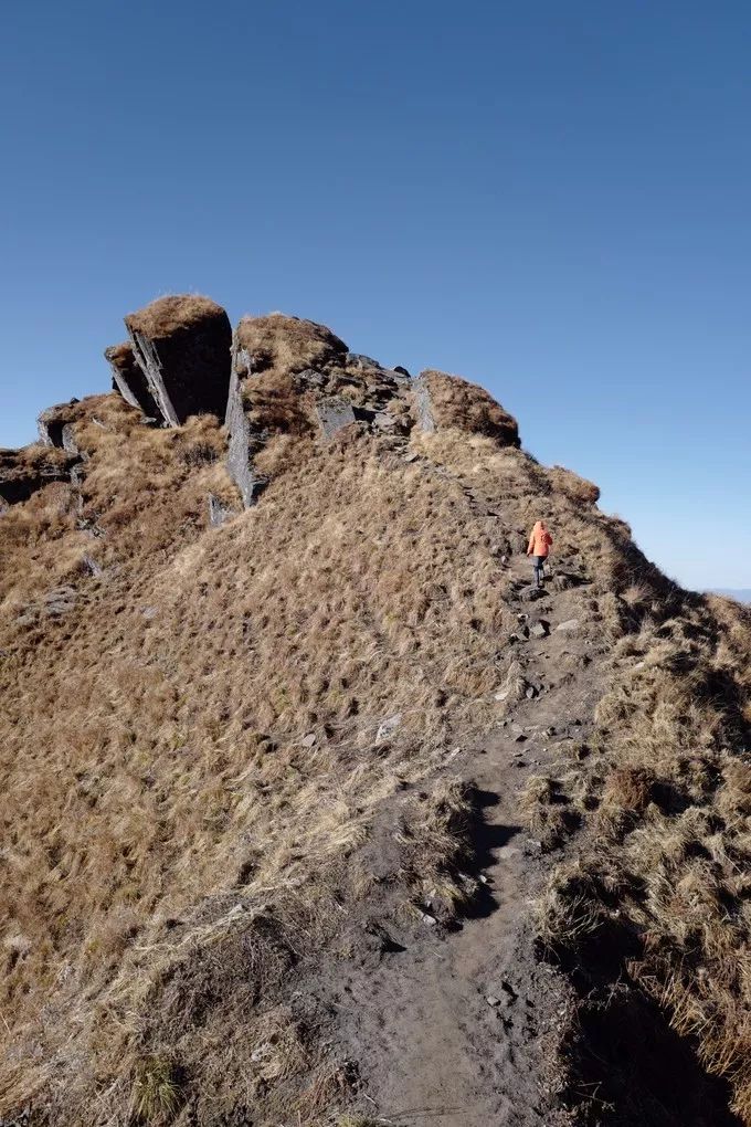 人的潜力是无穷的,经过一夜的休整,我竟又可以继续上路。我对向导说,你先走吧,走一截就在远远的前面等我,我想感受一下一个人在路上的感觉。于是他按照自己的节奏走远了。