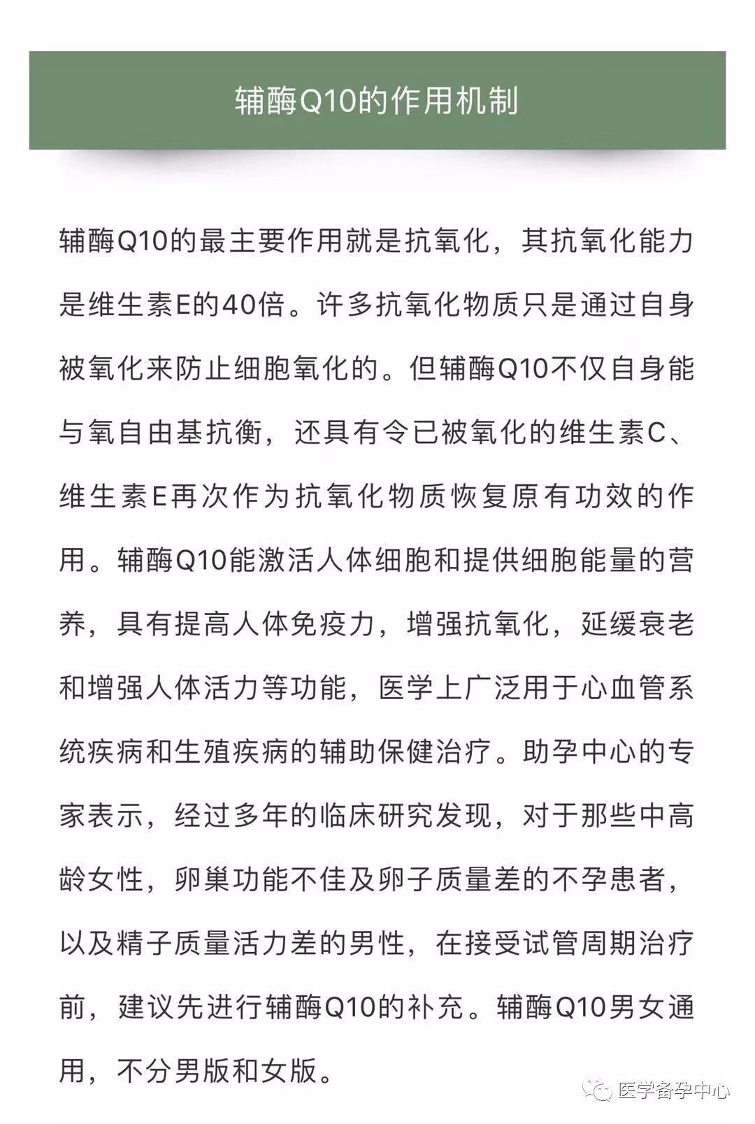 吃辅酶Q10,有很多生殖医学献文,也有很多生殖医生推荐不孕不育人群服用辅酶Q10。