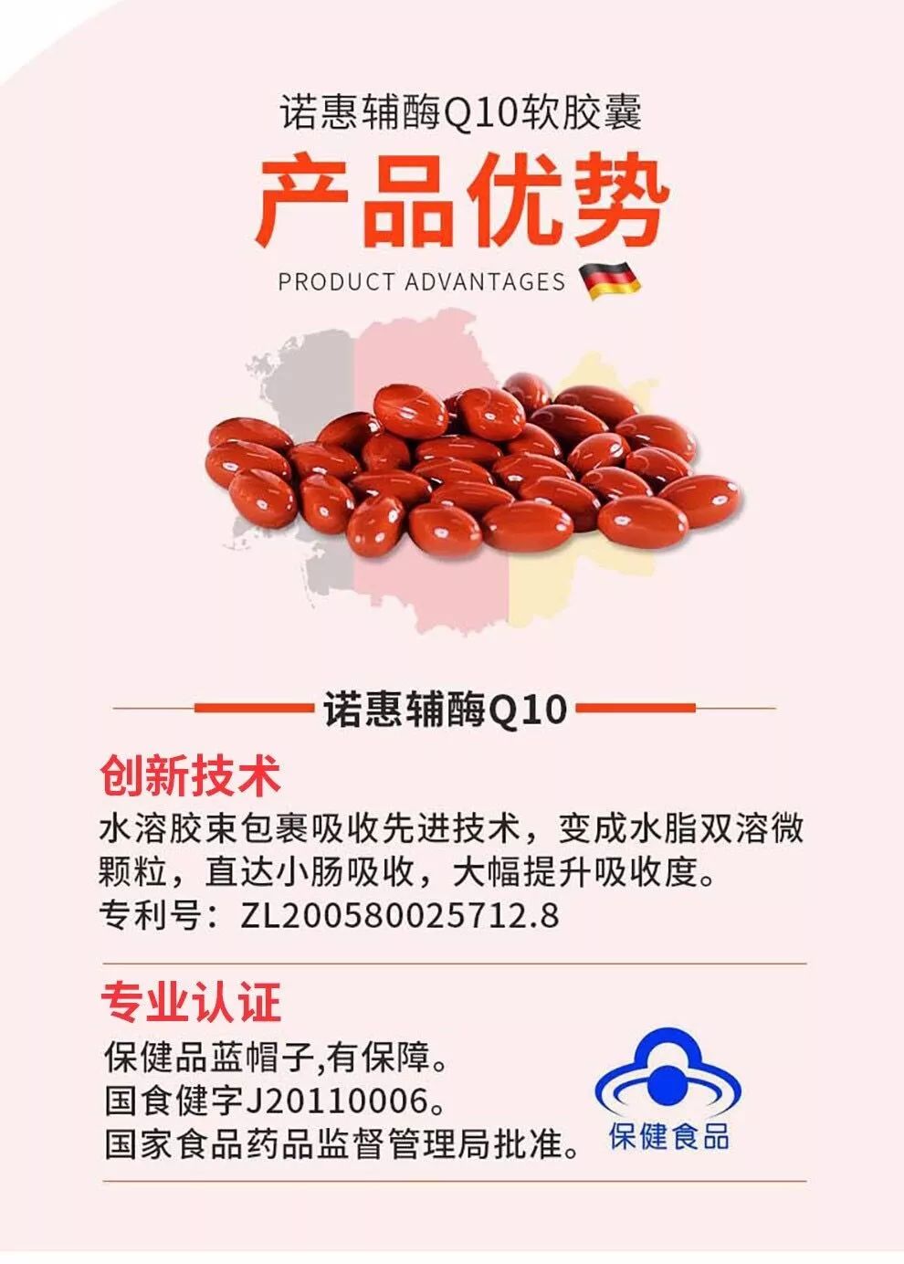 诺惠辅酶Q10,德国创新技术,胶束、水油双极吸收技术,把辅酶Q10转变成100%水溶及100%脂溶,容易穿透小肠壁水膜,被人体吸收。通过改善水溶性以及减小胶束直径,突破性解决脂溶性辅酶Q10吸收难的问题,使得诺惠辅酶Q10的吸收度提升3.1倍。