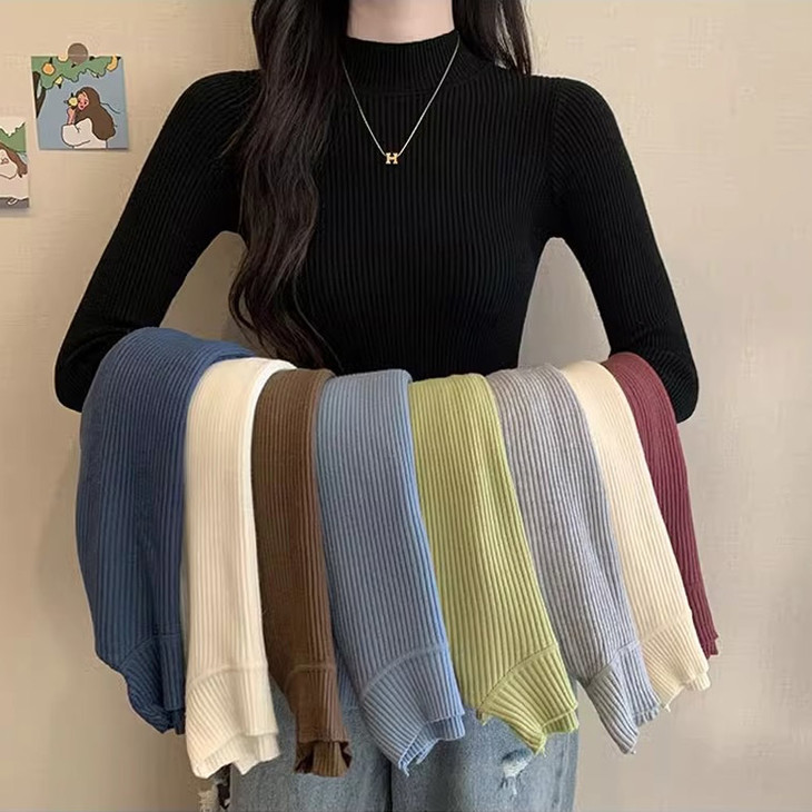 文案:高品质针织打底衫,肉眼可见的好面料💦版型微修身不紧绷,面料软糯四面弹性大,半高领设计上身更暖和~4️⃣9️⃣/2件