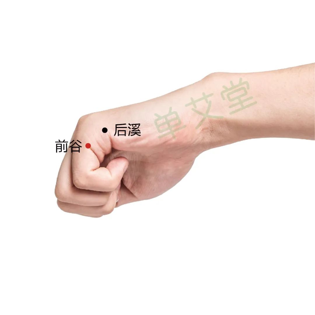 3、后溪穴:在小指掌指关节的后面。有肩颈问题的朋友点揉后溪穴也许不会痛,不是因为这里没有堵,有可能是气血堵在天宗和肩贞穴上,等疏通好上面的穴位后,后溪穴就会有感觉了。