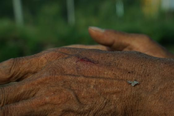 为了制作火粪,帅叔的手被树枝割破,他说戴手套会影响搭火粪堆的手感,所以他拒绝手套。