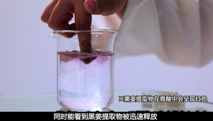 「保护&释放」的专利制法(专利号6944036)。不同成分定向释放,保护活菌免受胃酸侵害,同时让黑姜在胃里溶解。