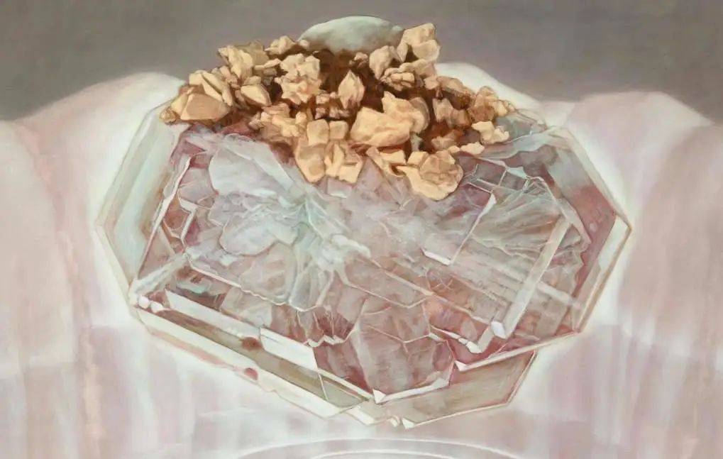 《瑞》系列,可解作祥瑞、瑞兽,和古代用作祭祀的玉器信物。画作连贯东方文化中的各种符号代表,如画中的灵兽形象,浮现东方智慧中龙的图腾。姜淼屏气凝神建筑的世界中散发出一种不可侵犯的气场,铭刻着远古留下的智慧和思想,亦流露出一种安然、随其自然的气息,祈福和平,用她的艺术唤醒内在力量。