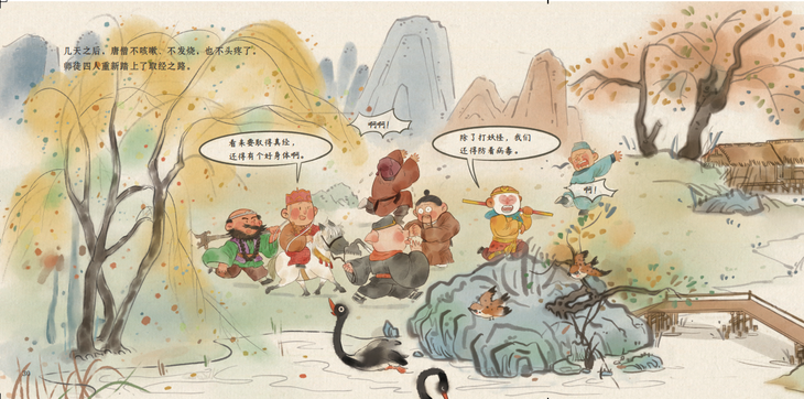 几天之后,唐僧不咳嗽、不发烧,也不头疼了。师徒四人重新踏上了取经之路。瞧,就算是西天取经,也得有个好身体才行。