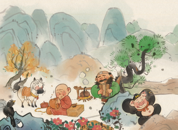 这天中午,师徒四人走累了,准备休息一下再赶路。