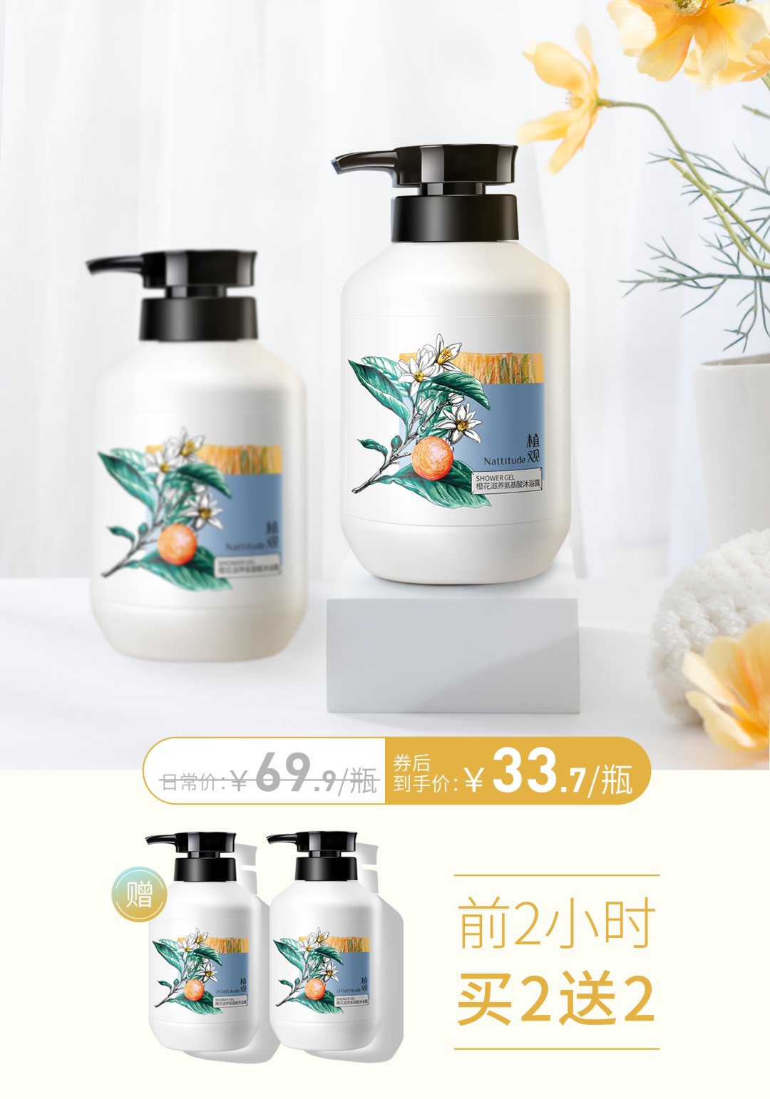11月23日11:00-13:00,买2瓶送2瓶正装橙花沐浴露!券后到手价低至¥33.7/瓶。