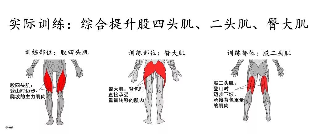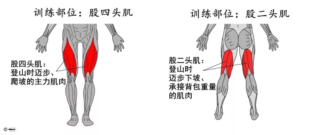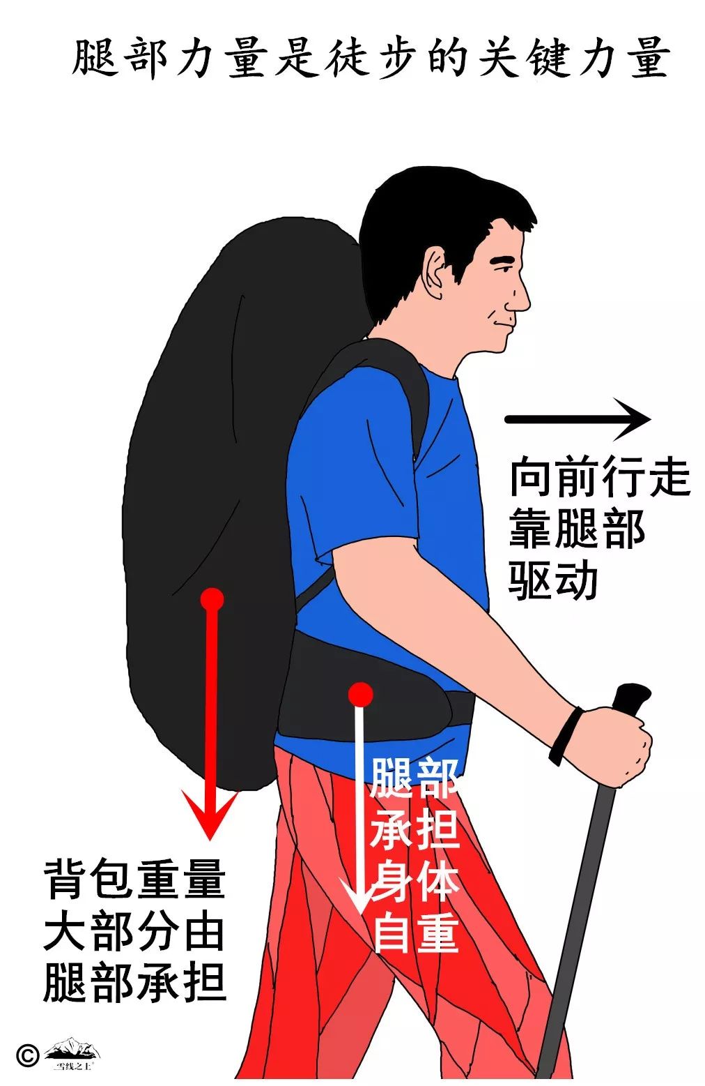 在登山行走的过程中,人的腿部承担了所有的体重和冲击,还负担了背包的重量。所以腿部力量的重要性也就不言而喻了。