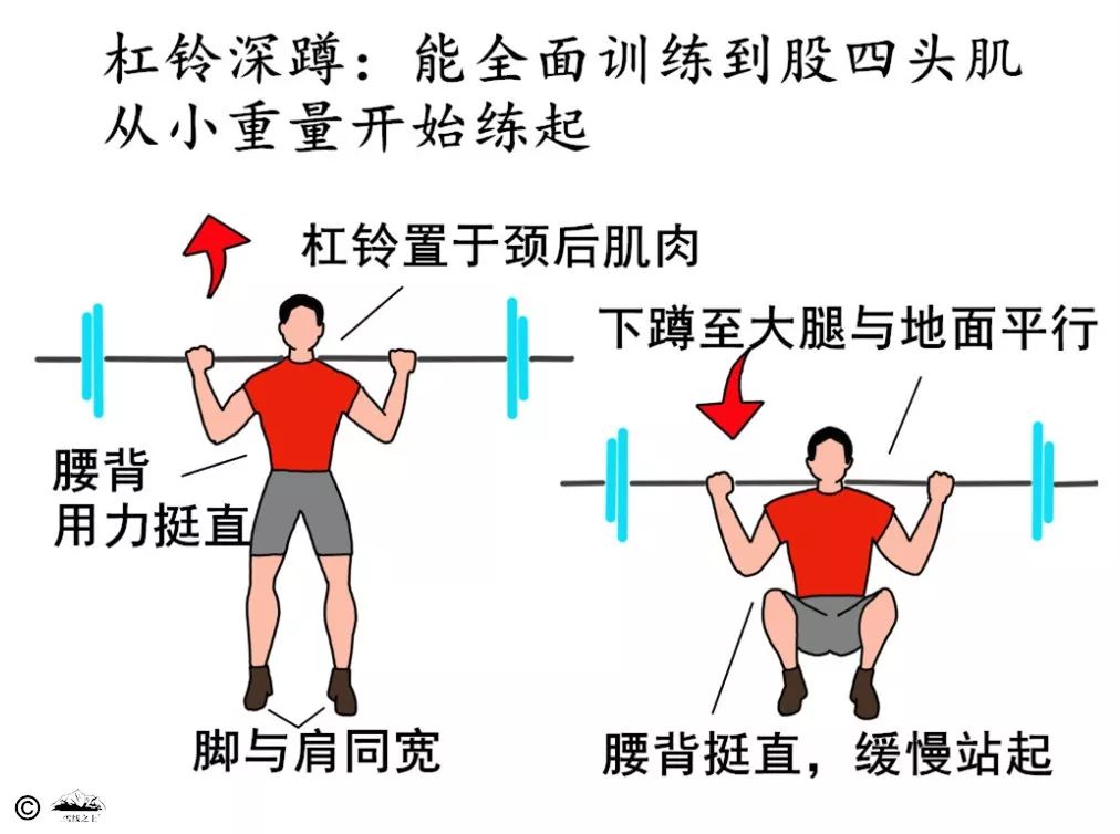 深蹲动作被称为“力量训练之王”,也是唯一一个能全面的训练到股四头肌的动作。