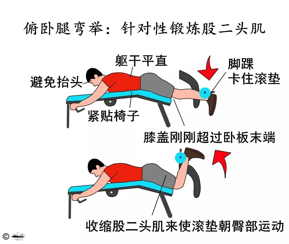 俯卧腿弯举是针对大腿后侧股二头肌的训练。