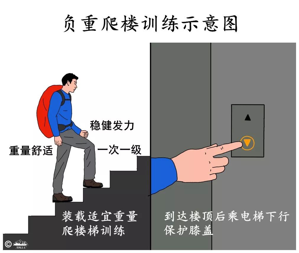 用背包装入重物(不宜过重或过大),爬楼梯时建议一级一级上,不要跑步,稳健的踏每一步,不要突然发力,防止膝盖受伤。