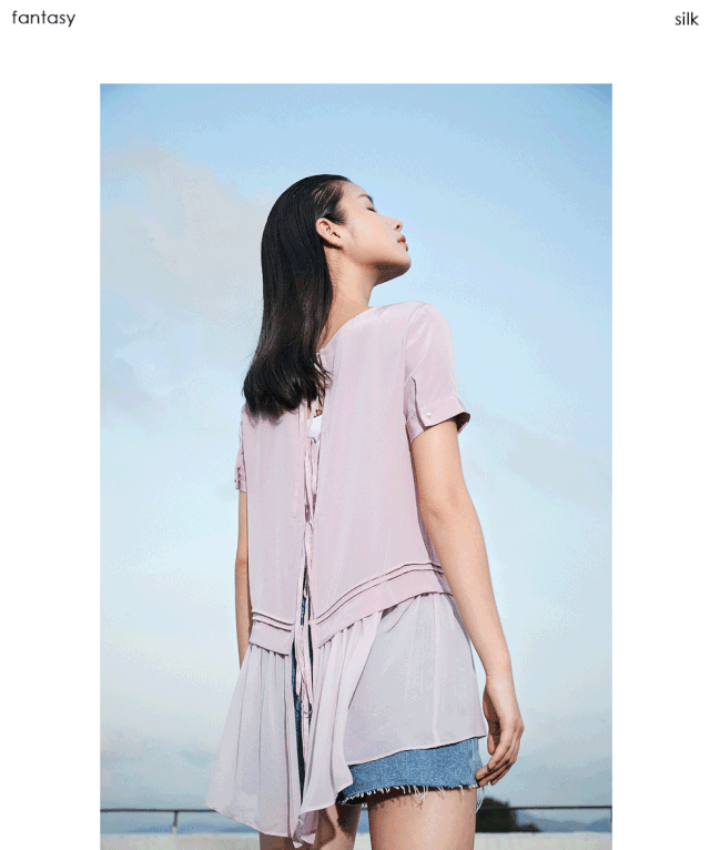 选用23姆米重绉真丝,丝毫不用担心会透。面料中含100%桑蚕丝,具有良好的透气性。下摆的面料采用8姆米乔其真丝,打造轻飘飘的美感,还有遮肉功效。
