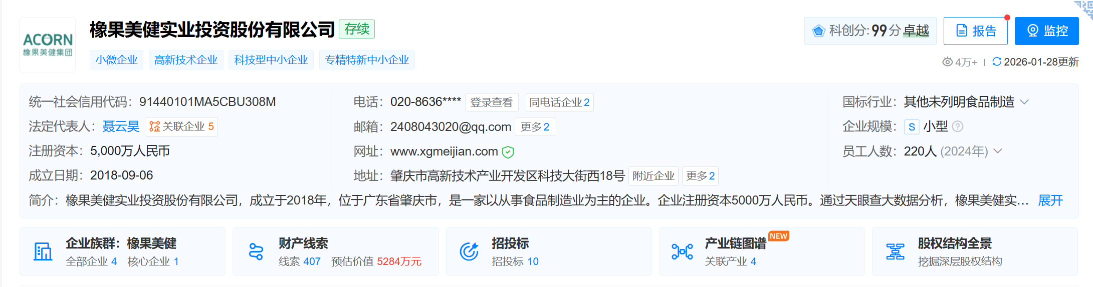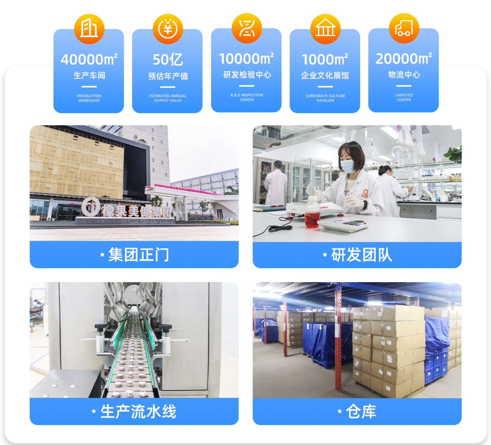 大健康食品制造企业,20年以来一直专注于大健康产业,智能智造总部橡果美立方位于广东肇庆国家高新区的中国新兴产业示范基地,设有5大食品类型生产线,预计年总产值将超50亿。