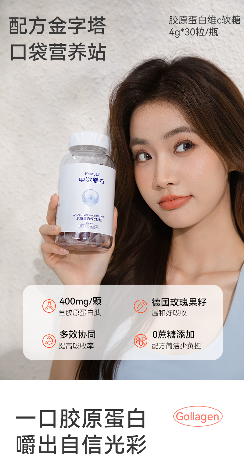 【中滋膳方】胶原蛋白 肽维VC软糖配抗衰老紧致皮肤女性小分子美白嫩淡化细皱纹
