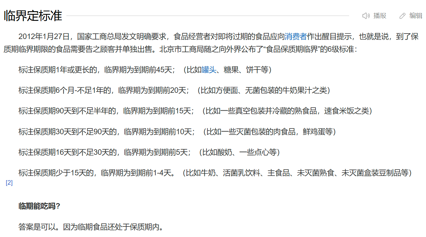 【按国家工商总局 “食品保质期临界”标准:标注保质期1年的,临界期为到期前45天】