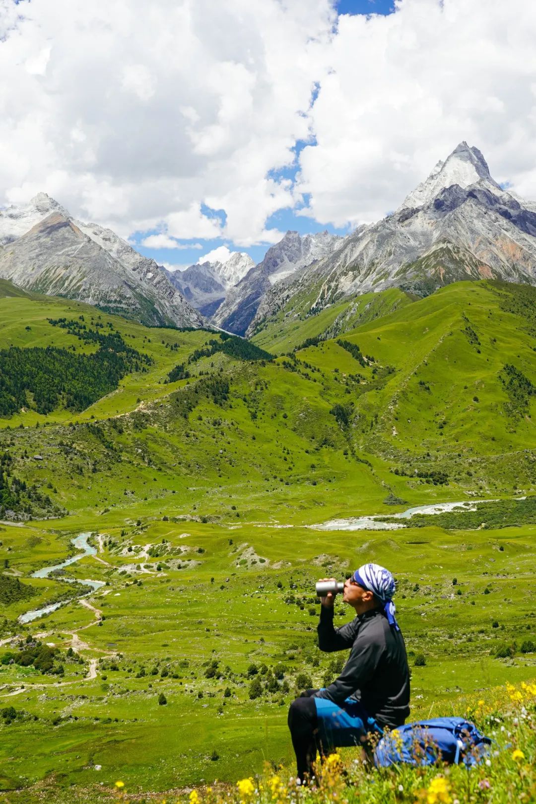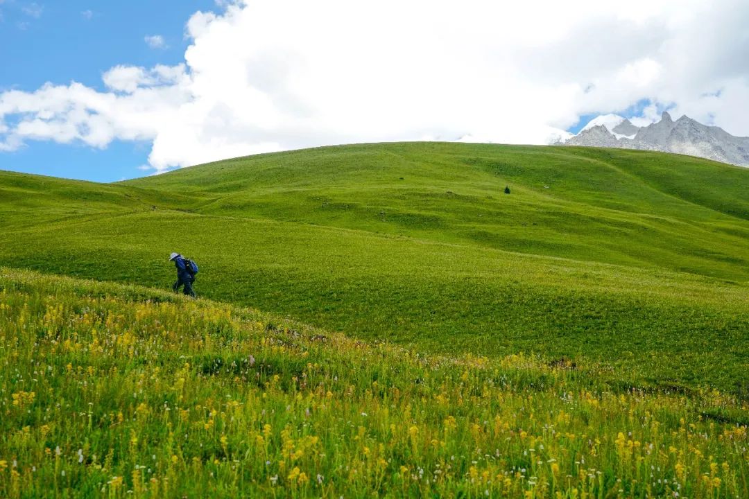 因为格聂真的太顶了!历经千幸万苦的我们在格聂取到了“真经”。虽然说雨季也是花季,可鲜花遍地的季节,雪山就总是云雾缭绕,难得一见真容,雪山和花海总是有一点两难全的。这一次的格聂神山,也许是体谅我们远道而来的不易,宽容的接纳了我们。一路上晴空万里,花海雪山相伴,夜晚星空璀璨,银河闪耀。