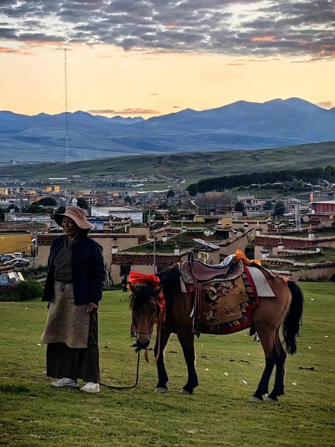还没进山开始徒步,天空之城理塘就以绝美的晚霞迎接了我们的到来。天边夕阳映照着这座高原小城,它在温柔的治愈我们长途旅行的疲惫。