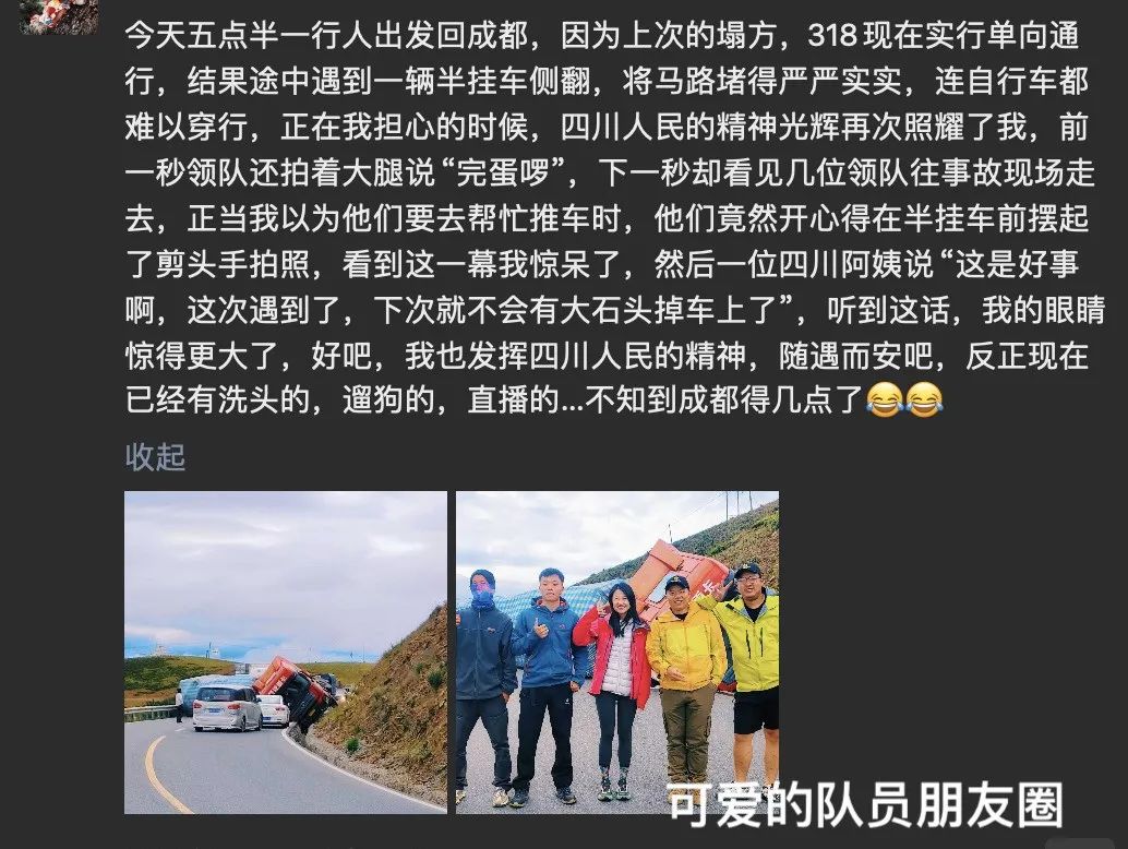 一切开始得都很顺利,兴冲冲的跑完比赛的时候,还没想到我现在笑得有多开心,等会儿就有多焦头烂额。拿起手机就看到,雅康高速路桥被泥石流冲断了,318 也断了。这是前往甘孜州的必经之路。这就面临我们必须绕道而行。这就意味着行程变更,车程变长,可能收到投诉…(但是收到了队员夸夸和锦旗,大感动!)