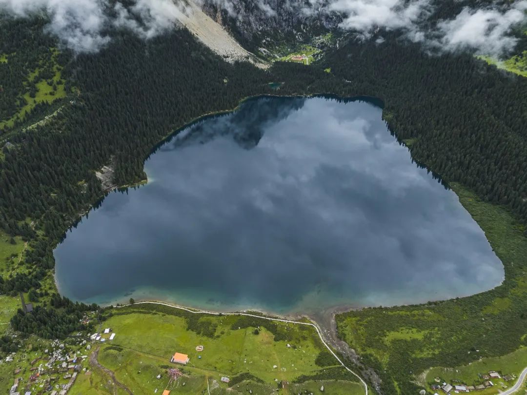 措普湖被称为“香格里拉之魂”,它面朝辽阔的章德大草原,三面被杉柏森森的原始森林包围着,宛如一颗斑斓的明珠,湖光璀璨。