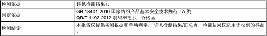 鹅绒枕的优秀,自然少不了检测佐证: