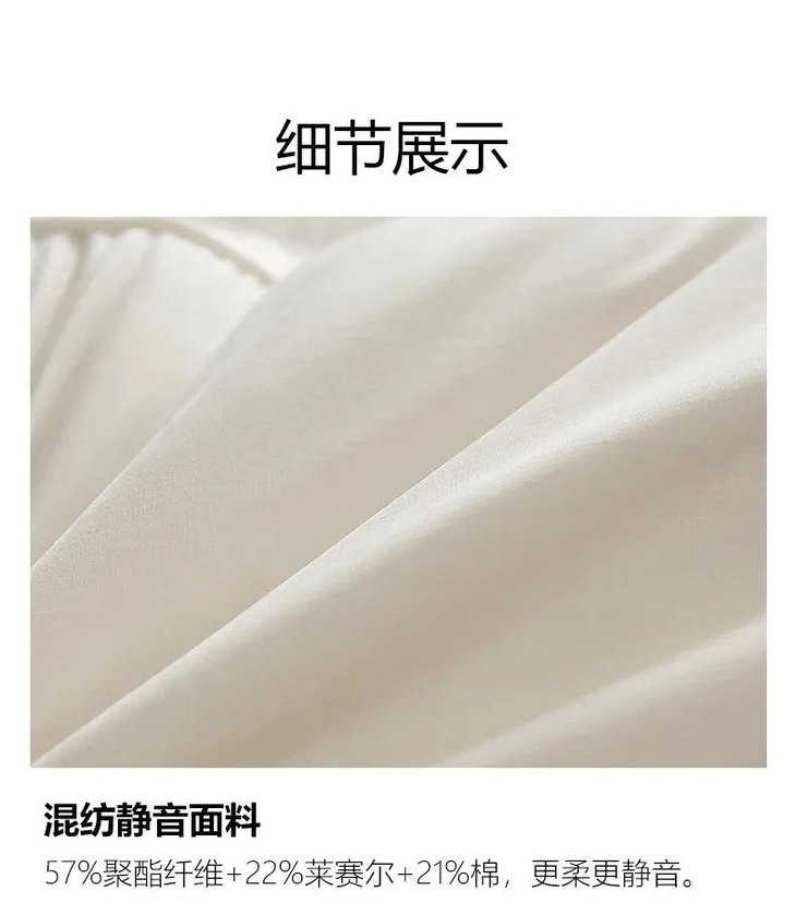 混纺静音防绒面料,亲肤细糯。
