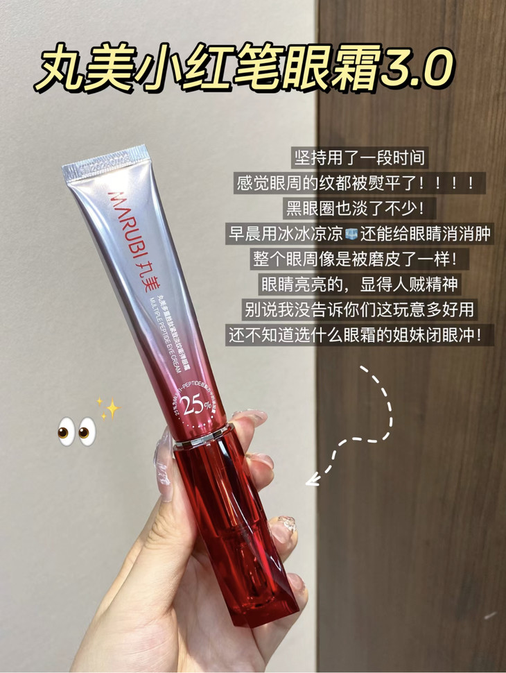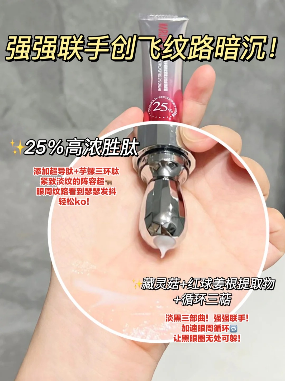 ✅小红笔往里面全新添加25%高浓胜肽,促进胶原蛋白的产生,泪沟纹的沟壑一点点饱满起来😍