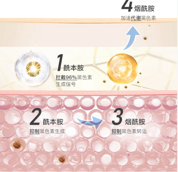 酰本胺:能够抑制黑色素生成,从源头上破坏黑色素的稳定,从而进一步保证美白效果。