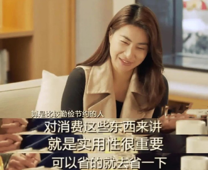 她说自己日常生活里比较勤俭节约,一直以来的消费观就是:实用性很重要,能省则省。