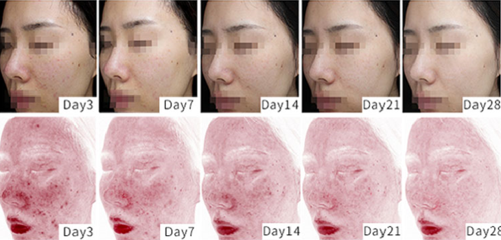 5秒看清VISIA仪器下28天使用kevi面膜的肌肤变化: