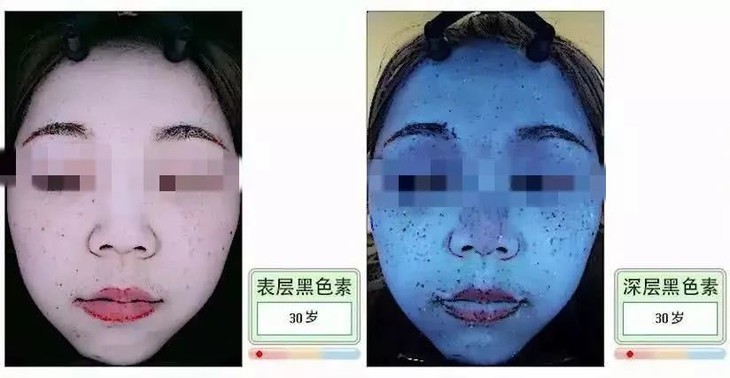 使用kevi面膜28天后,能够在VISIA仪器下清楚看见肌底黑色素沉积得到有效改善。