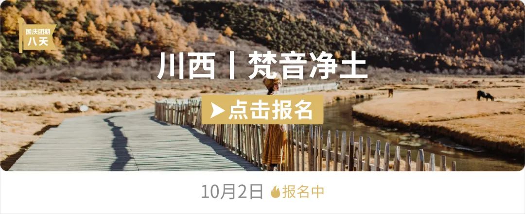 《梵音净土》可以说是市面上最极致的川西线路之一,不错过经典稻城,又避开游人打卡其它的川西小众点,8天时间深度玩川西精华,探索藏区文化瑰宝。《天空之城》5天时间,就能Get川西不属于稻城亚丁的雪山彩林+甸湖泊,更有星空温泉+云海日出+异域星球+摄影天堂,性价比极高的秋季短途旅行。