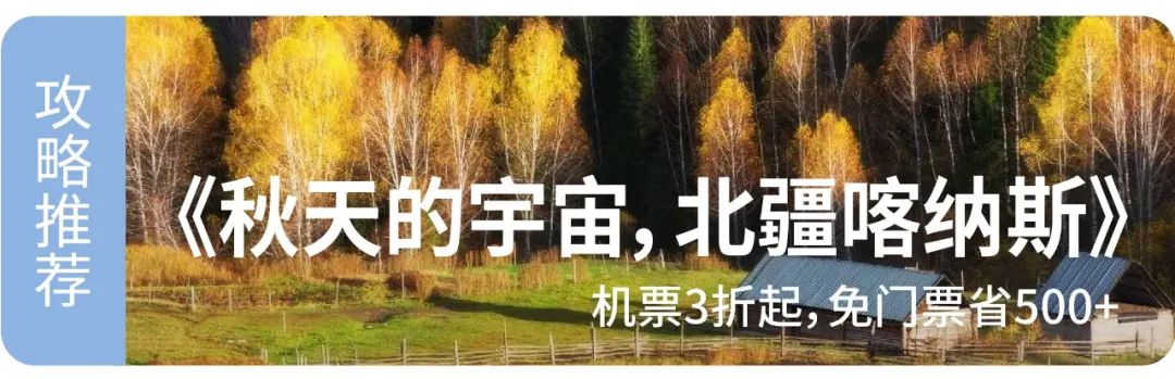 ❷ 即日起至2020年11月10日,喀纳斯所有大IP景点免门票,行影的线路已含门票费用,报名可退近¥500,今年是去喀纳斯最划算的一年;❸ 由于刚刚开放的原因,机票比往年都便宜很多,例如上海往返只要4折。喀纳斯能成为「中国秋色之首」,在于它绝对的广袤、绝对的全面、绝对的饱满。它是秋的大地,秋的宇宙。喀纳斯湖是除长白山天池外中国最深的冰碛堰塞湖。湖水沿着山谷蜿蜒,造就了月亮湾、卧龙湾、神仙湾三大绝色。藏于高山深处的原始孤独村庄,完全就是童话世界里的样子,原木制成的尖顶木楞屋、林间小径、被散养的牛羊,都勾勒出秋天最美的模样,让人浑然忘记了时间。《人间伊甸园》是一条兼顾经典+小众IP+私家体验的北疆全景追秋线路。9天时间留足时间畅玩阿勒泰、伊犁地区,前往独家私藏秘境,不走回头路,车程更轻松。