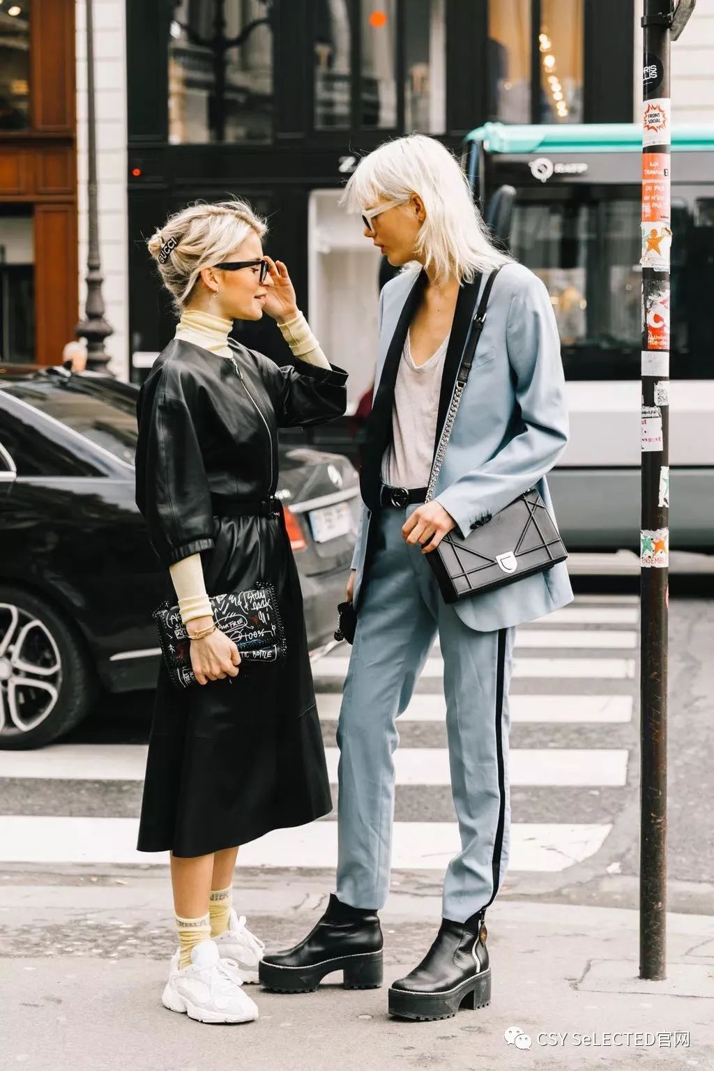 蓝白色系的搭配更轻快,蓝黑色系更沉稳大气。尤其是深蓝色系搭配黑色,这组配色也是在很多力量型单品搭配里出现更多的。