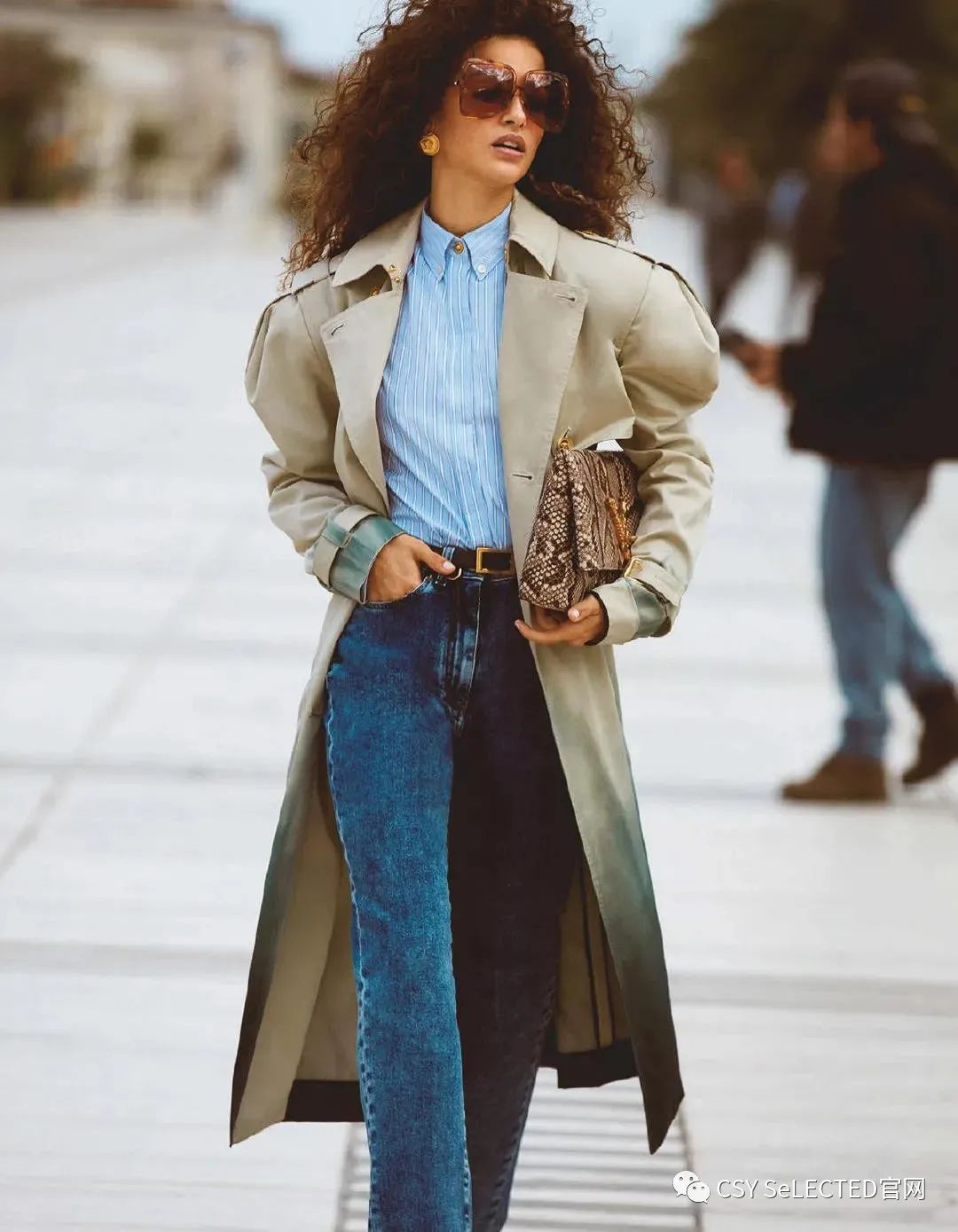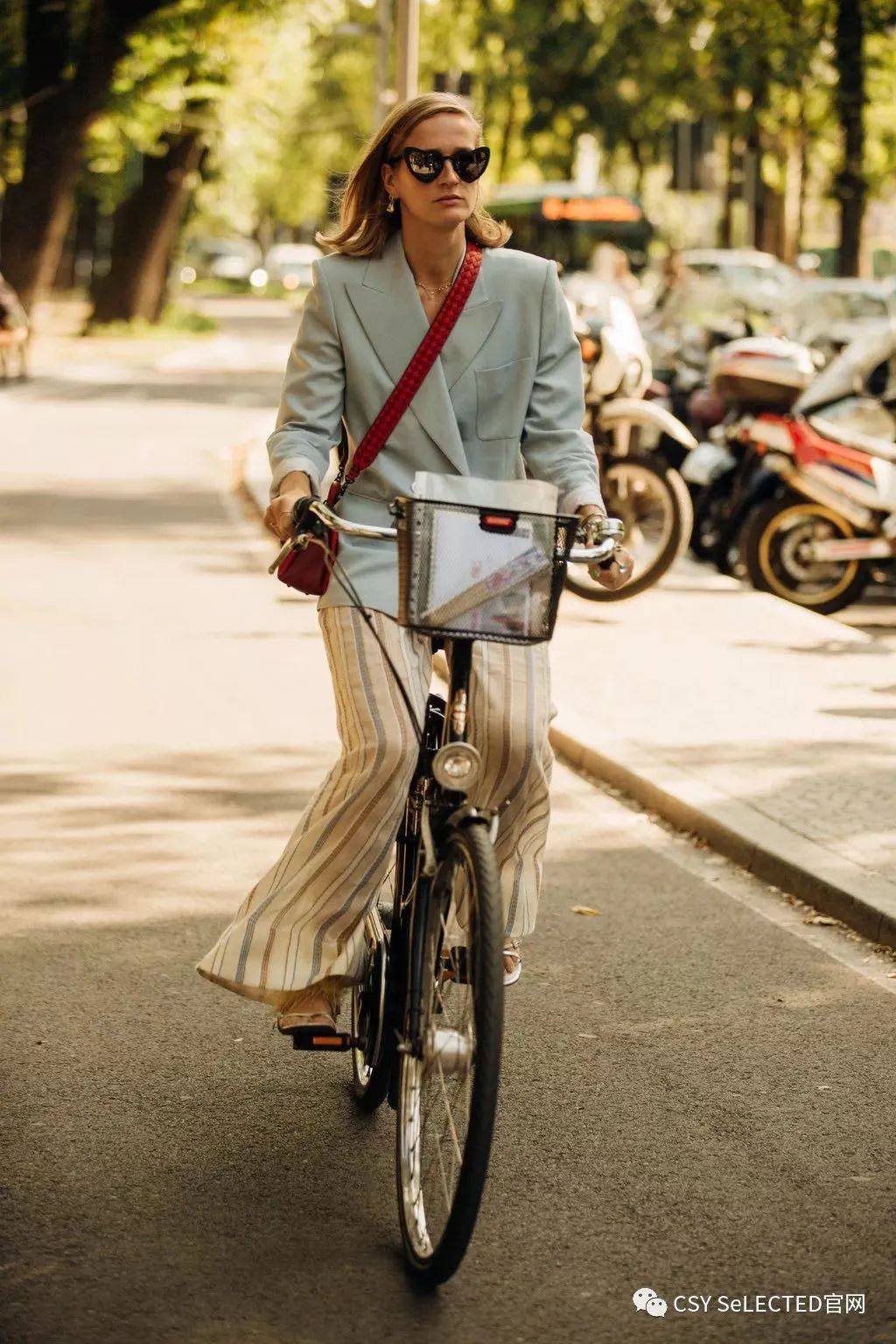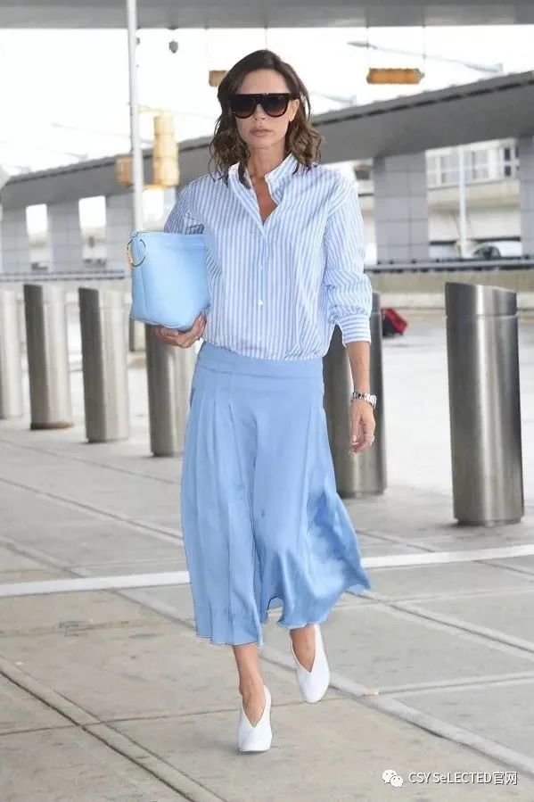 蓝色+白色系的配色非常适合爽朗的早秋时节,也许是因为加了一层蓝天白云的大自然滤镜,给蓝白配色的组合增加了天然的纯净和纯粹感,让穿着者看起来更柔和宁静。